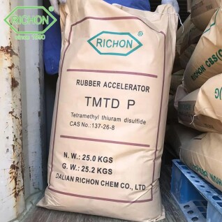 این محصول یک شتاب دهنده از دستهی تیورامها (Thiram) با ظاهری سفید رنگ و یا خاکستری روشن که به صورت پودر روغنی مصرف میشود. TMTD ماده ایی سریع و موثری در فرآیند پخت و مناسب برای همه لاستیک های غیر اشباع رایج مثل BR,SBR,IR,NR,NBR می باشد. این ترکیبات نه تنها به عنوان تسریع کننده عمل می کنند بلکه به عنوان اهدا کننده (یعنی امکان پخت بدون گوگرد) نیز موثر و در فرآیندهایی با مقدار کم و یا بدون حضور گوگرد برای لاستیک های غیر اشباعی مثل IIR,EPDM استفاده می شوند